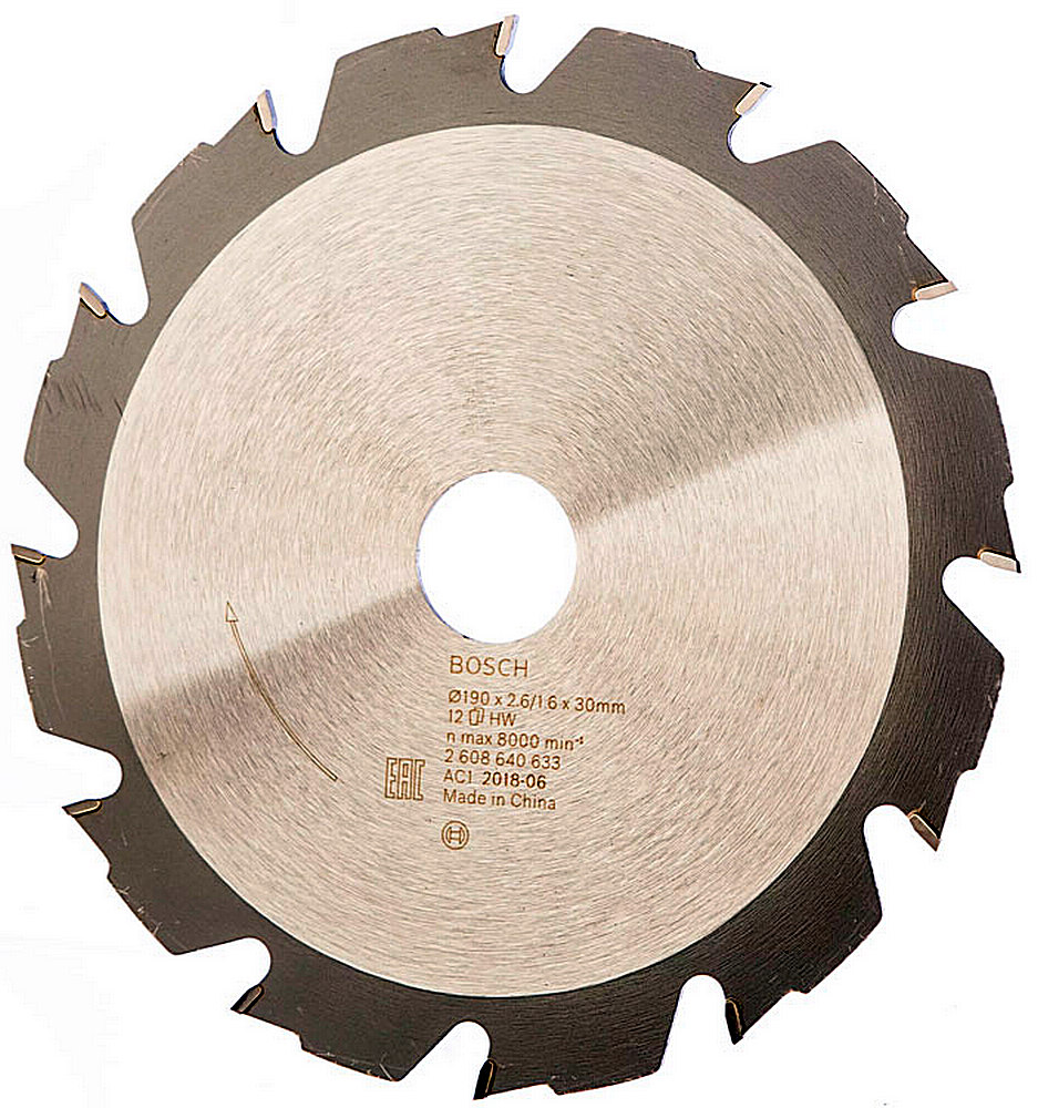 Жаль только, что не все производители указывают толщину тела диска. Вот на находящемся под рукой Бошевском диске артикул 2 608 641 802 на упаковке и на самом диске указано следующее — 190х2,5х30 мм, 54 (зуба). 2,5 мм это толщина пропила, а толщину тела диска можно узнать только измерив её штангенциркулем.