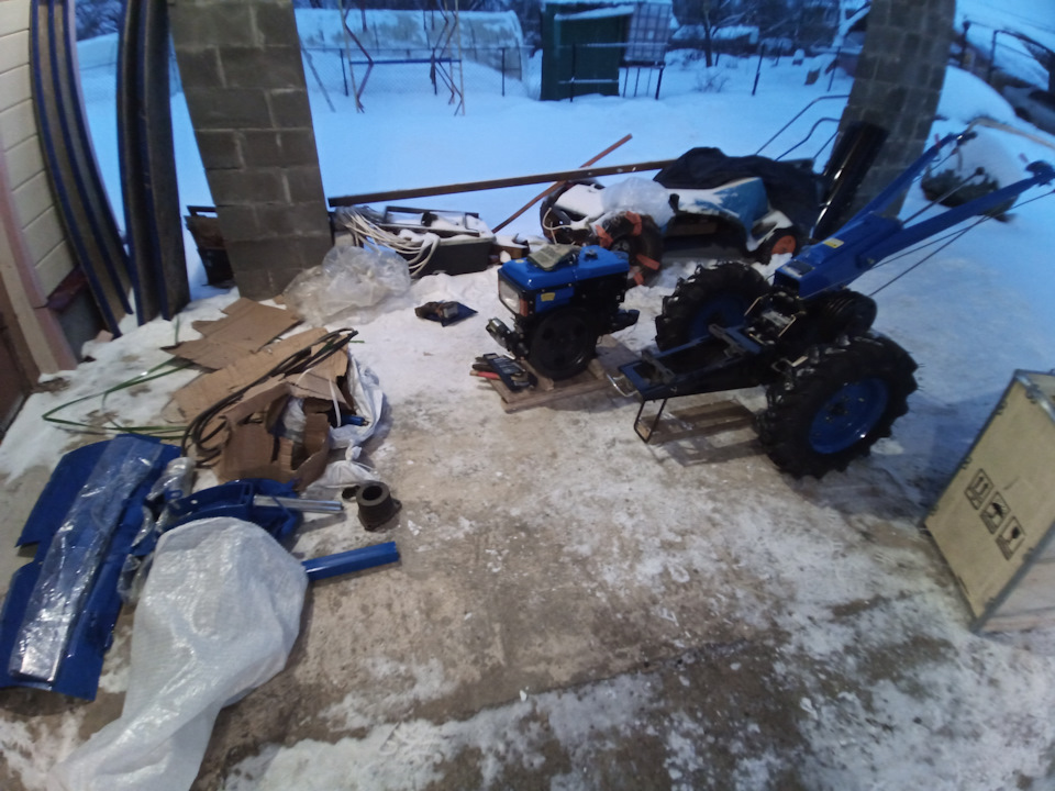 Пока собрал, завел, с непривычки не повернул кран поступления солярки, заводил долго))