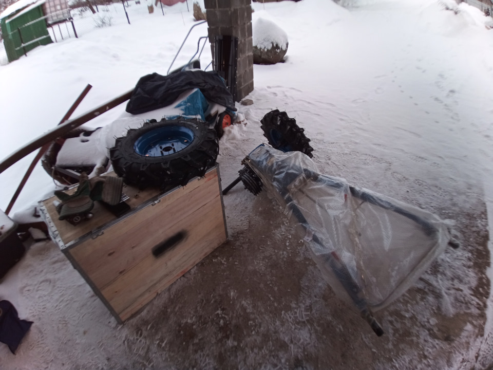 Колеса хоть и мягкие, не пластмасса дубовая, сейчас -10 было, мягкие на ощупь, но вес такой что проваливается в снег. Что сразу широкие не давать в комплекте и пусть дороже на 5т.