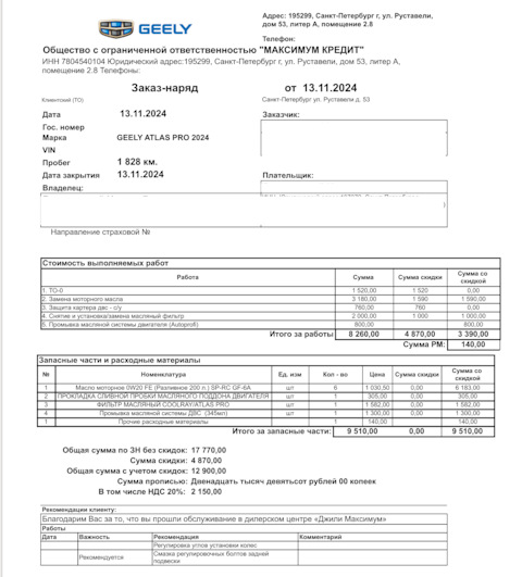 Приехал, отдал машину. (предварительно озвучили 14 300 за все).