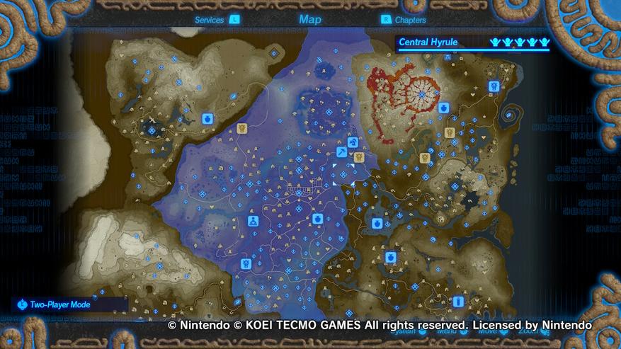 В отличие от Breath of the Wild, где игроки бегали по огромное карте, здесь карта мира доступна лишь в виде изображения. Оно усыпано кучей значков, число которых постоянно растёт. Среди них есть миссии и испытания, за завершение которых получаешь ресурсы. Эти ресурсы потом тратишь на получение новых возможностей. Постройка магазина упростит поиск некоторых материалов, приобретение кузницы и тренировочного полигона поможет стать сильнее, а разблокировка рецептов позволит перед вылазкой употреблять пищу, которая увеличит скорость передвижения, усилит атаку или защиту.