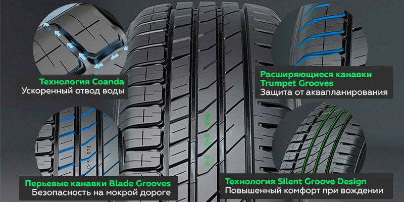 Технологии, доставшиеся от финской Nokian и применённые в протекторе, обеспечивают шине отличные водоэвакуационные и сцепные свойства: