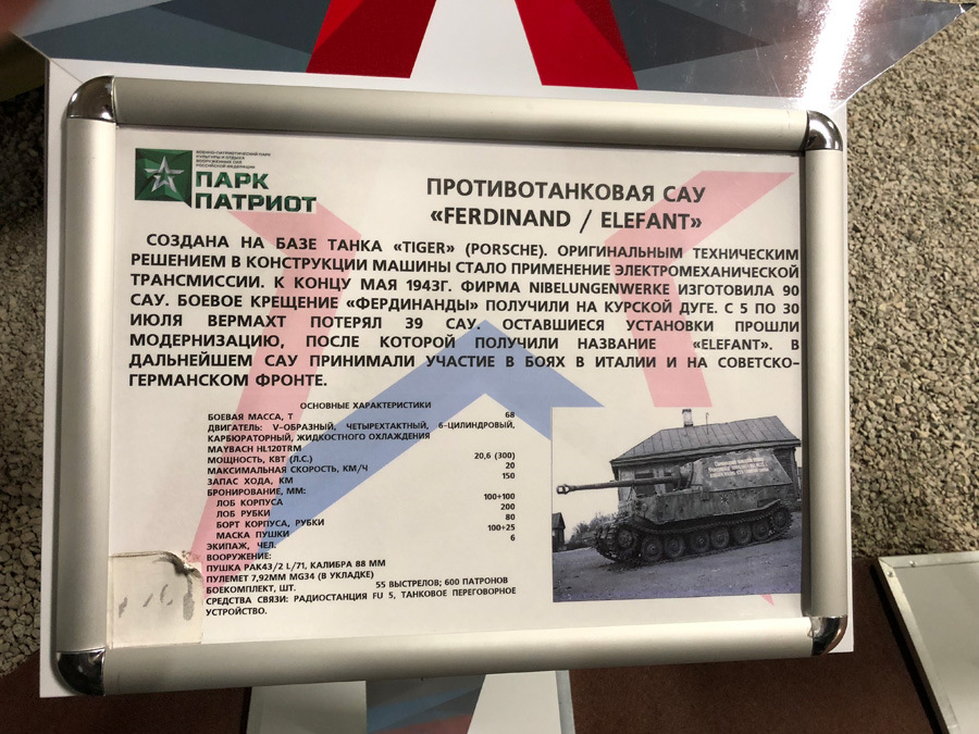 Около каждого экспоната расположена информационная табличка, на которой указаны основные характеристики и история создания танка.