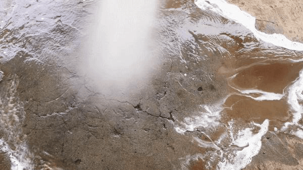 А вот так работает турбо-фреза. Вода выходит под очень высоким давлением тонкой струёй, при этом сопло очень быстро вращается. Видео замедлено почти в 20 раз.