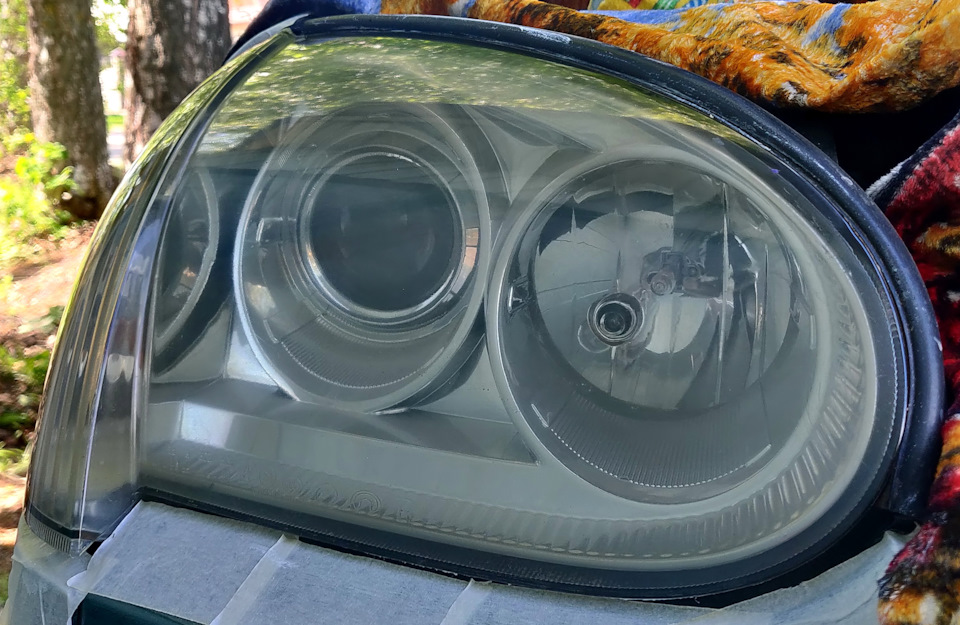да нет это HS. Ну я не много утрирую. Первый слой нормально нанес мокро. И уже на нем было видно шагрень. Второй залил конкретно ибо боялся что и на лице будет видно шагрень. А на фарах это не гуд.