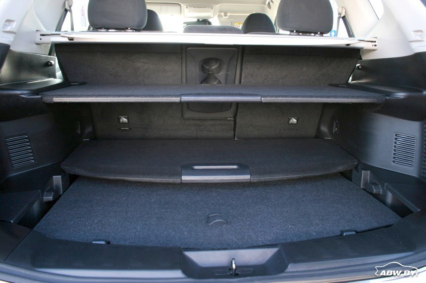Пожалуюсь на багажник. Машина объемная, в Европе они продаются в семиместном варианте, второй ряд сидений двигается. Багажник вызывает сожаление, а причина только одна — полноразмерная «запаска». Дизайнер придумал, что можно вот так играть с полками, но я ни разу так не делал — это красиво, но бесполезно. В машине европейской сборки тонкая «докатка», пол на 10 сантиметров ниже. Получается небольшой, но более-менее вменяемый багажник.