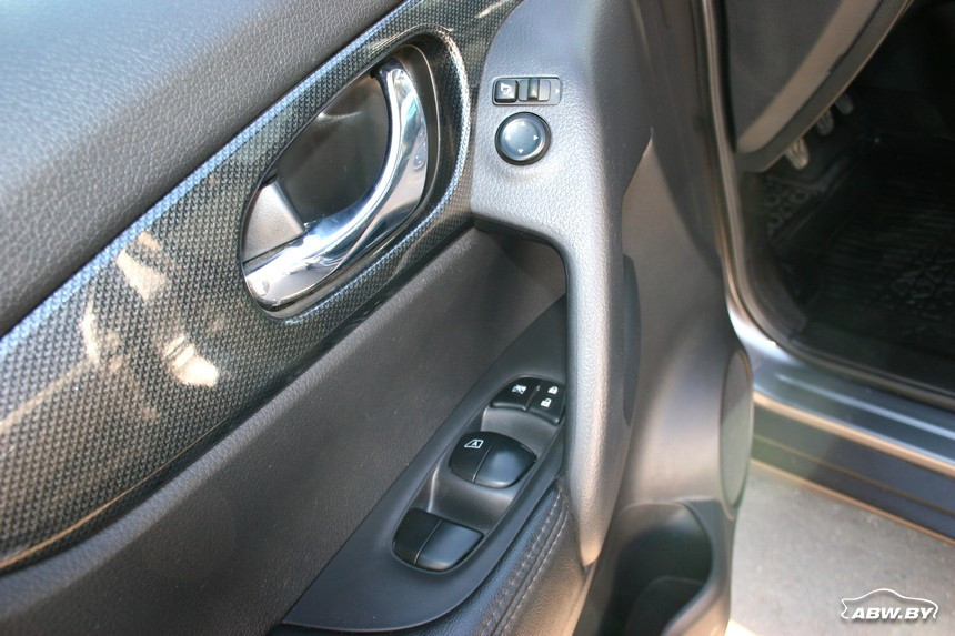 Второй момент — кривоватые стекла в передних дверях. Все владельцы X-Trail об этом знают. Обшивка отходит, когда опускаешь-поднимаешь стекло. Проблема в стеклах, которые по изгибу не совпадают с рамкой двери. Когда первый раз положил руку на дверь — это прямо шокировало.