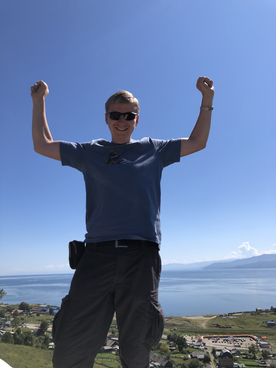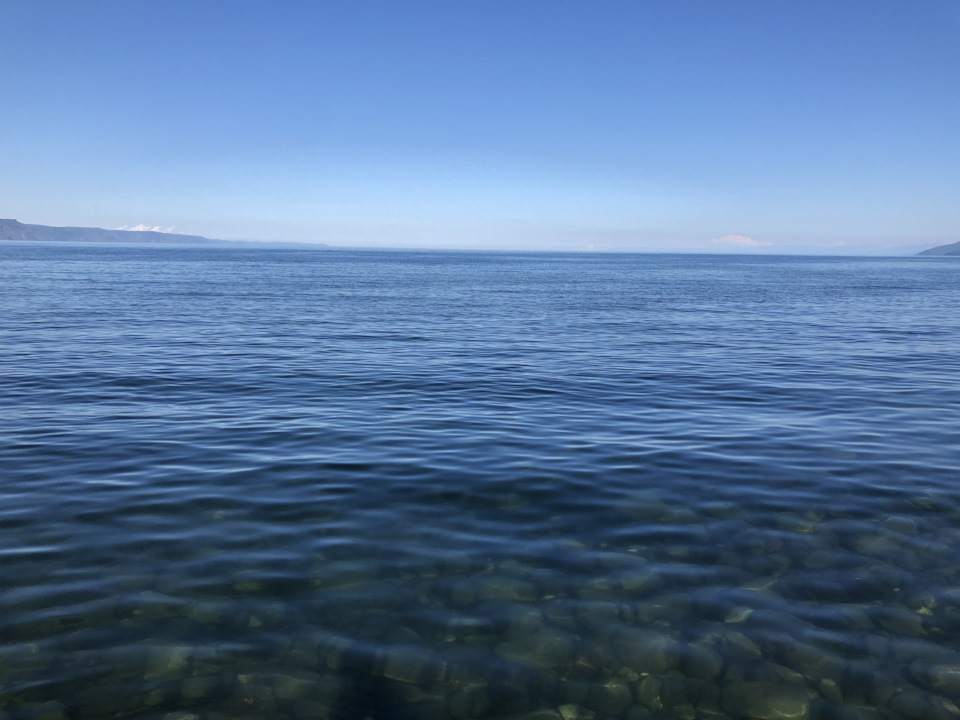 Вода настолько чистая, что, наступив на камень, я не ожидал, что тот глубже, чем казалось. В результате я не вошел, а упал в Байкал! Вода холодная, но как можно приехать на Байкал и не искупаться!
