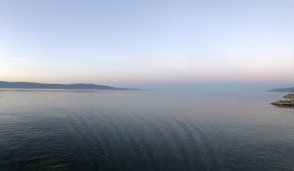 Участок километров за 100 до озера потребует большой концентрации внимания. Есть, с чем сравнить. Многие серпантины Кавказа и Грузии будут уступать коварным спускам и затяжным подъёмам, которые ведут к посёлку Култук. Держите дистанцию! На одном из спусков в зеркало я заметил, что фура за нами странно оттормаживается, заподозрил, что что-то не так. Была небольшая пробка и скорости были минимальные. Когда водитель фуры без особой, казалось, необходимости посигналил, я выкатился на встречную полосу, благо она была свободная и хорошо просматривалась с обеих сторон. Водитель фуры выкатил машину на обочину до полной остановки. На лицо, перегрев дисков и колодок. Разъехались! Очень повезло! Дальше я вклинился в ряд и еще через несколько крутых виражей я увидел Байкал!