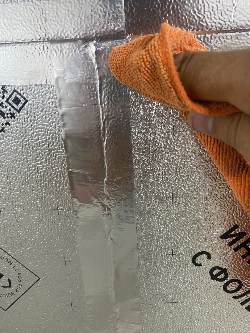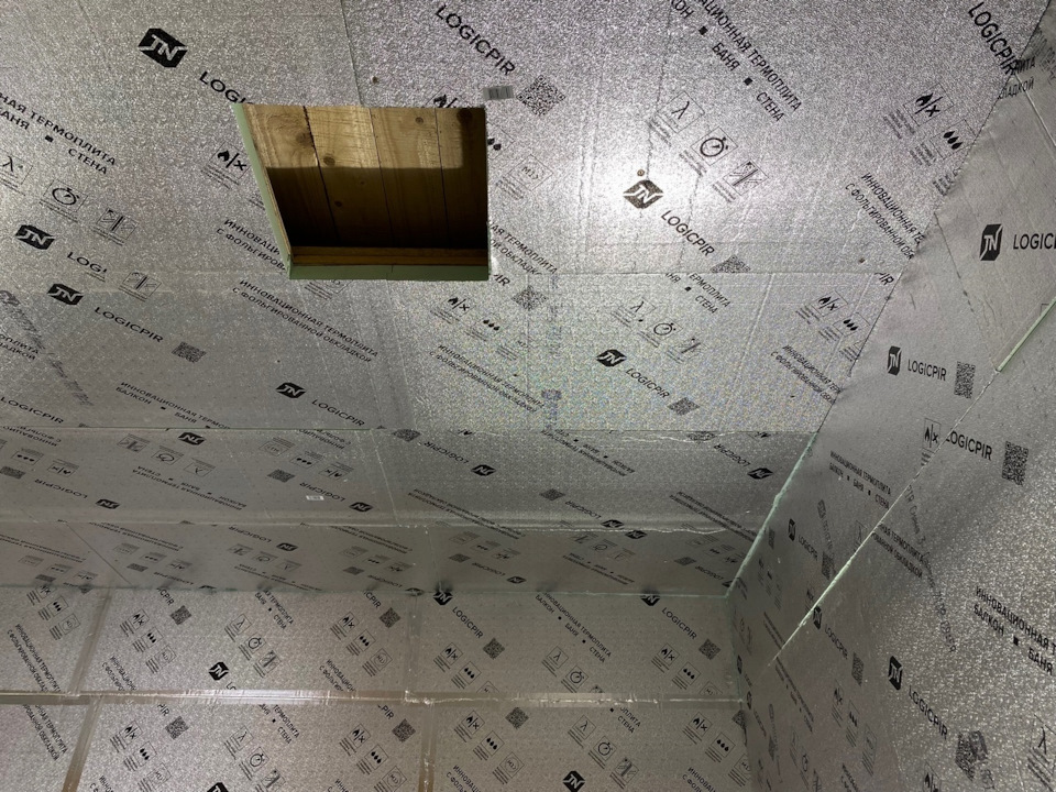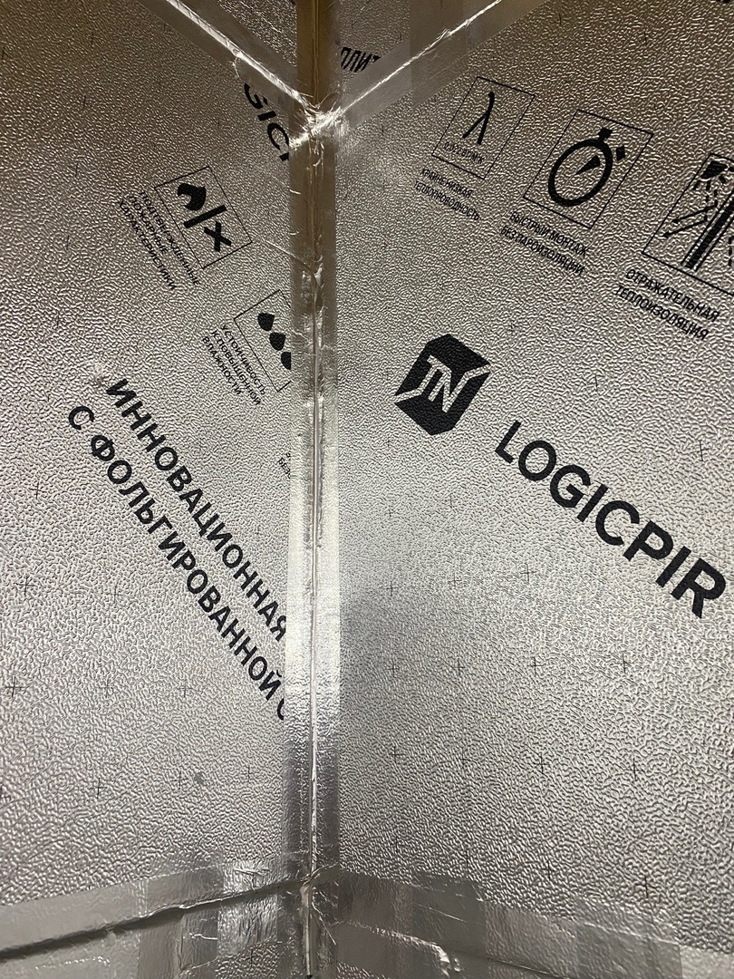 Тем самым после монтажа PIR плит, и проклейки всех стыков самоклеящейся алюминиевой лентой LOGICPIR, мы получим паронепроницаемый однородный тепловой контур, сквозь плиты и алюминиевую ленту, наш жар и пар ни каким образом не проберётся в сторону бруса, тем самым будет дополнительная защита.😍