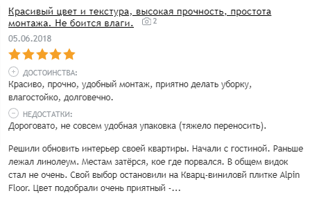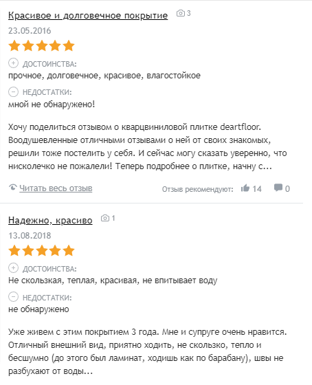 Чтобы понять, как в действительности показывает себя виниловая плитка в эксплуатации, приведем отзывы покупателей — наших клиентов и с сайтов-отзовиков.