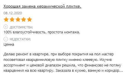 Положительные отзывы на плитку ПВХ
