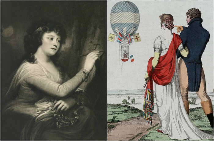 В 1784 году, всего через год после изобретения воздушного шара братьями Монгольфье, первая женщина поднялась в воздух. 19-летняя француженка Элизабет Тибл (Elisabeth Thible) совершила исторический 45-минутный полет. Эта возможность представилась ей, когда один французский граф струсил и отказался от полета. Оперная певица в костюме богини Минервы храбро забралась в воздушный шар, удивив толпу. Более того, в полете она помогала управлять шаром, подавая топливо в топку.