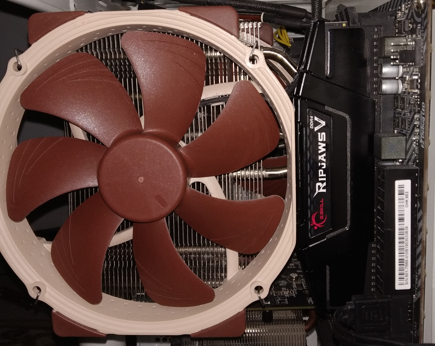 Установке памяти кулер не мешает, а вот установить на свое место второй вентилятор с кулером Noctua D-15 просто не получится.