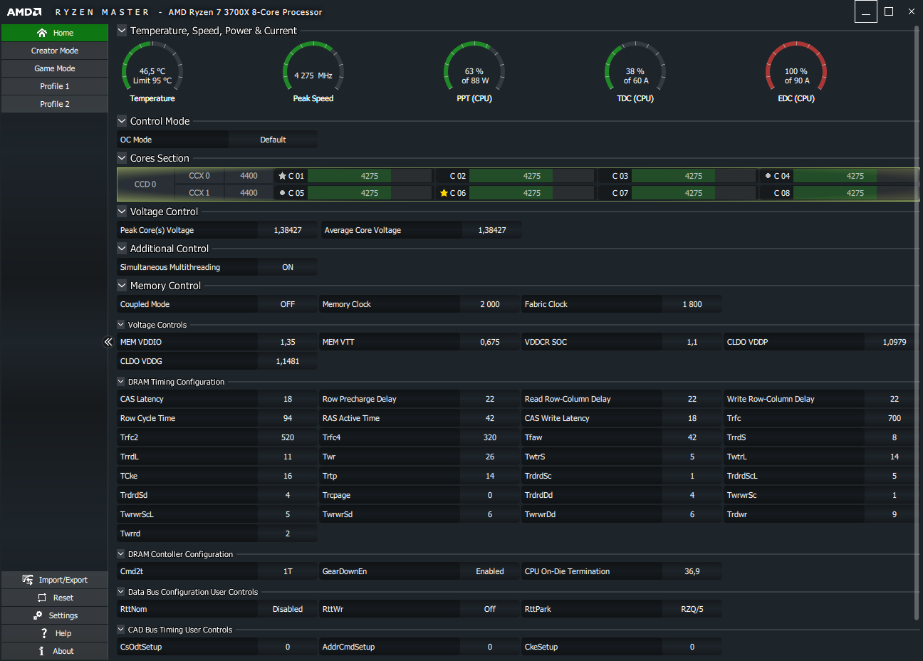 Конечно, большого смысла наращивать частоту оперативной памяти выше 3800MHz на процессорах Zen 2 нет ввиду особенностей работы контроллера памяти, поэтому попробуем по максимуму ужать тайминги на частоте 3800MHz.