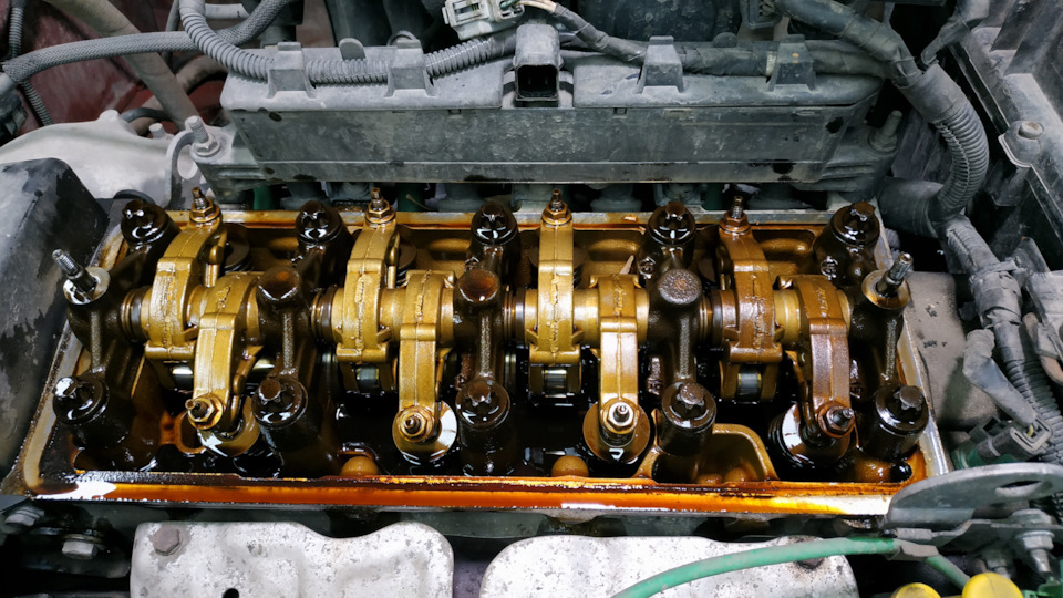 Прогреть двигатель до рабочей температуры, заглушить, открыть маслозаливную горловину.