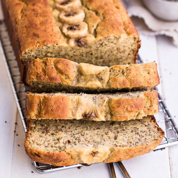 Ароматный банановый кекс с орешками и чиа. Когда будете готовить тесто, не забудьте оставить один банан для начинки. Кусочки нежного фрукта посреди рассыпчатой мякоти — особое удовольствие.