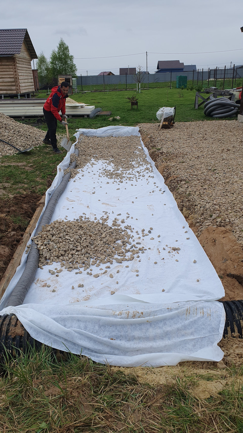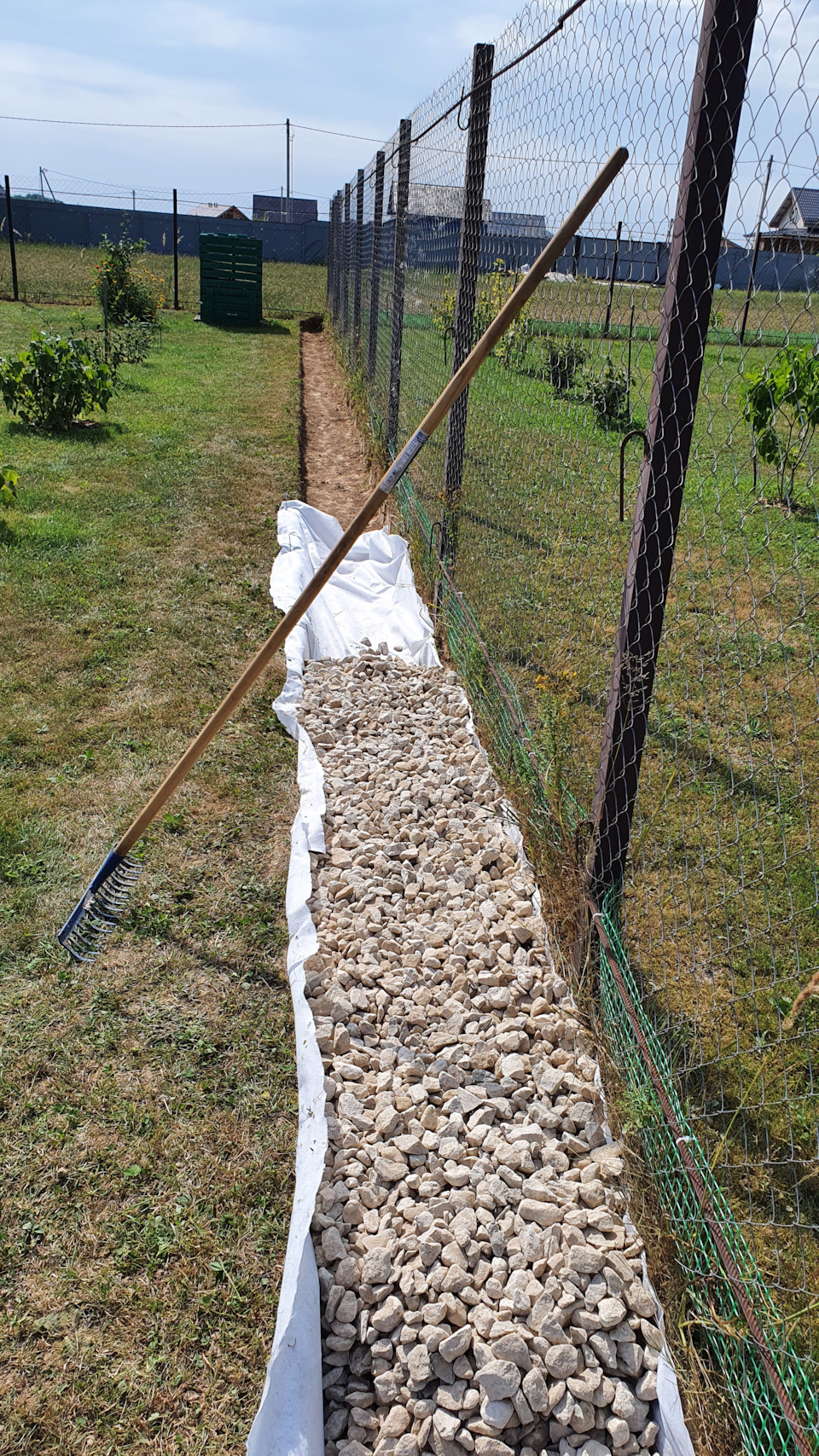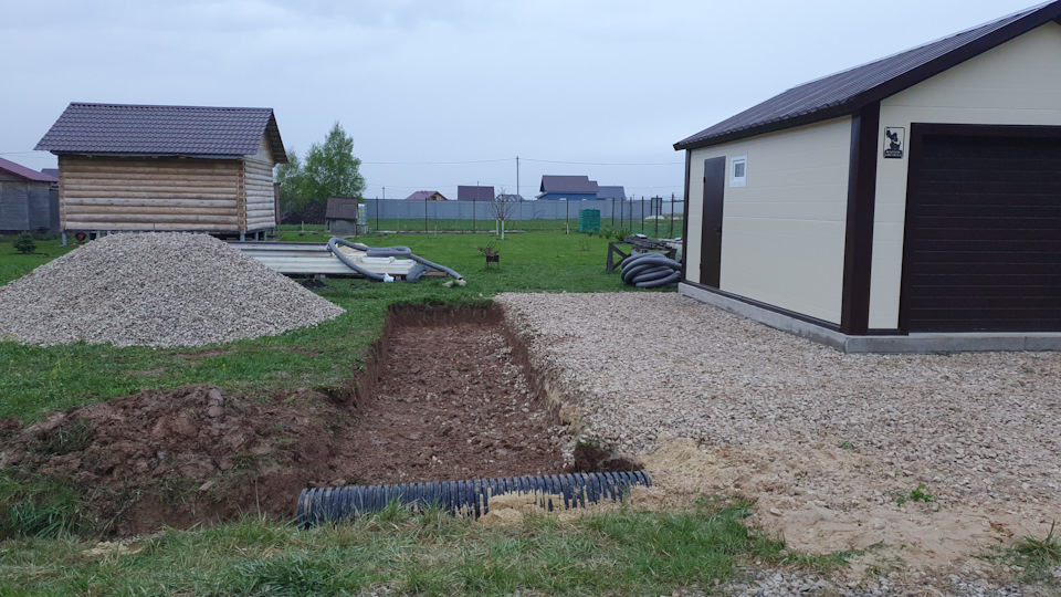 Кроме того, я решил доделать, начатую в прошлом августе дренажную систему, стоки с которой должны уходить в ливневую траншею.