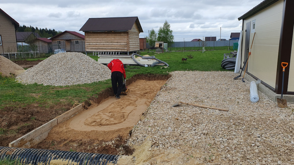 -присыпал слегка песком притрамбовывая и проливая водой периодически