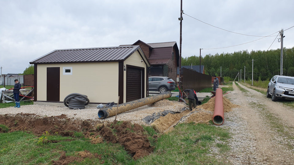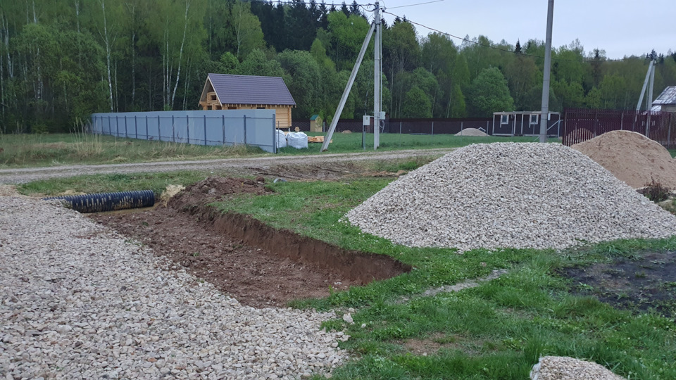 И так, решили мы с срседом Серегой соединить трубами его въезд, закрыть промежуток ливневой канавы между въездами на его участок и мой, а заодно, я решил расширить въезд на свой участок, чтобы он был на ширину гаража и парковки, и расширить саму парковку с 3,5 метров до 5.